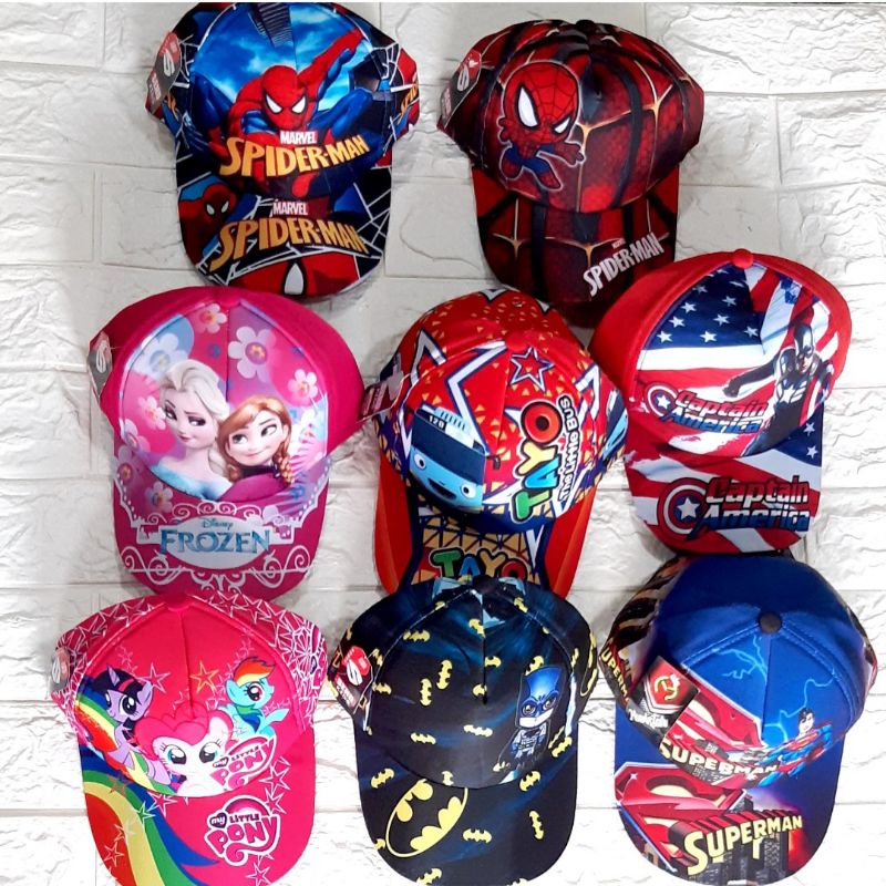 topi anak PREMIUM usia 1 2 3 4 tahun karakter superhero superman captain america kuda pony frozen