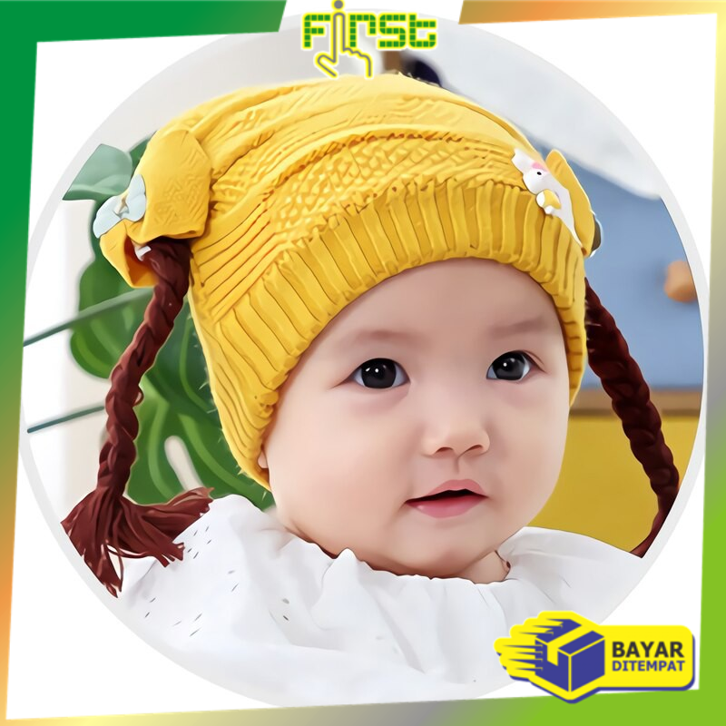 *COD*FH-P19-21 Topi Anak Perempuan Rambut Kepang Topi Bayi Kupluk Rajut Imut Lucu Baby Hat Wig Impor