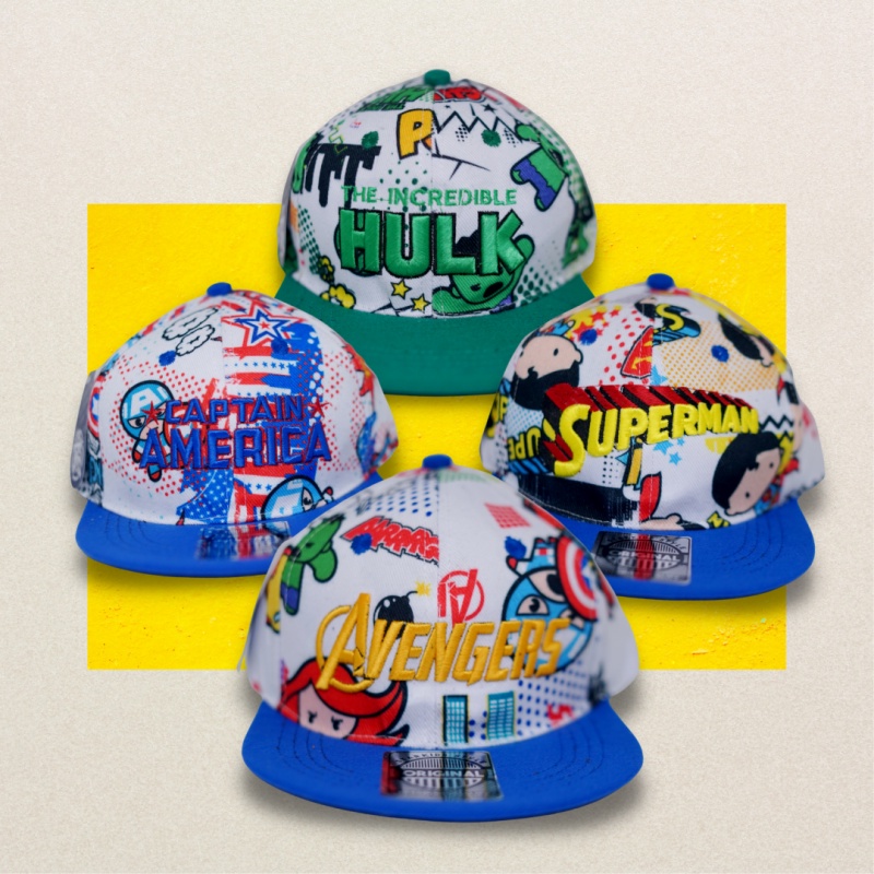 Topi Anak dan Balita Model Hiphop Exclusive Special Karakter Superhero Warna Biru dan Hijau Bahan Kanvas Premium Usia 2 - 8 Tahun