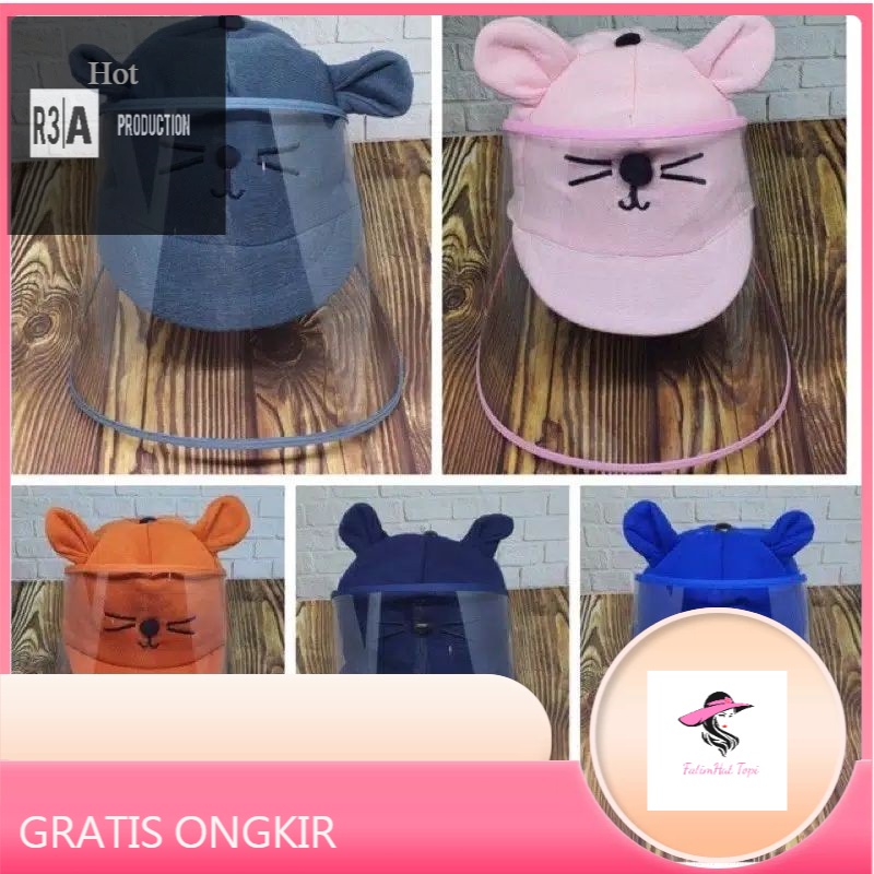 topi face shield anak bayi 1-2th / topi anak anti korona topi kucing