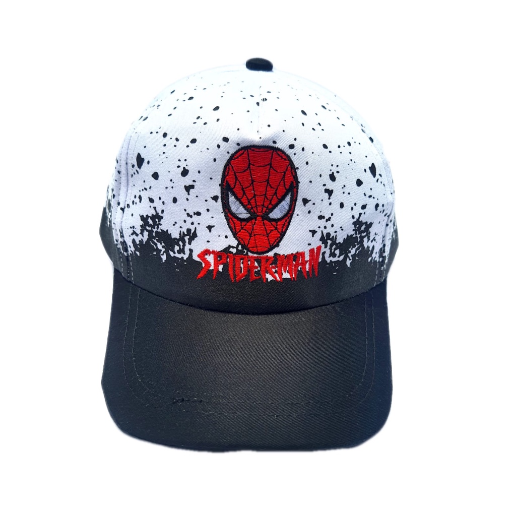 Topi Anak Laki Laki Cowok Baseball Logo Spiderman Bordir Background Bercak Hitam Putih Print Sublim Keren Lucu Usia Umur 1 2 3 4 5 6 7 8 9 10 Tahun topi